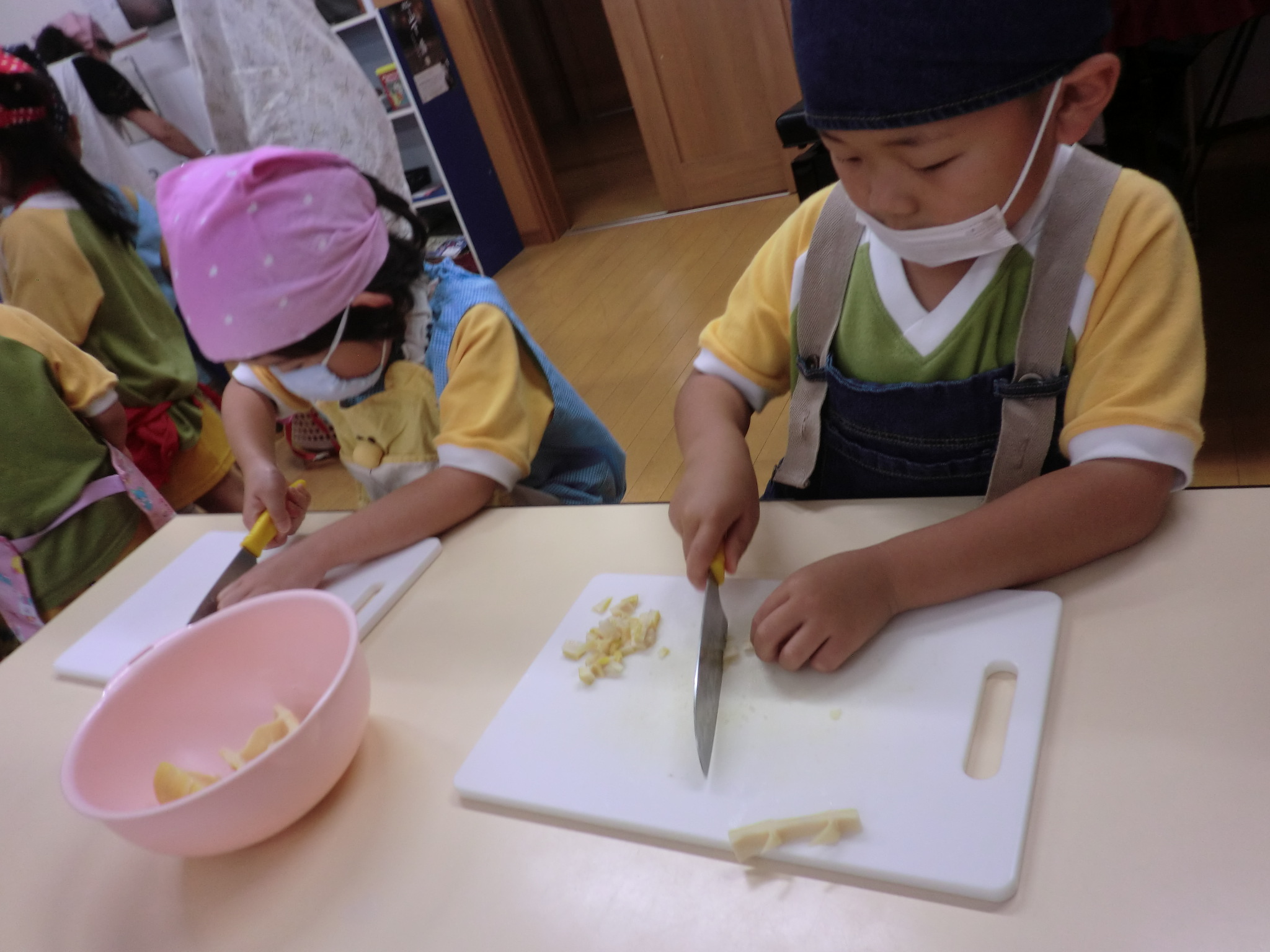 収穫した野菜は、毎月のクッキング活動で活用し、子どもたちは楽しく食事を学びます。