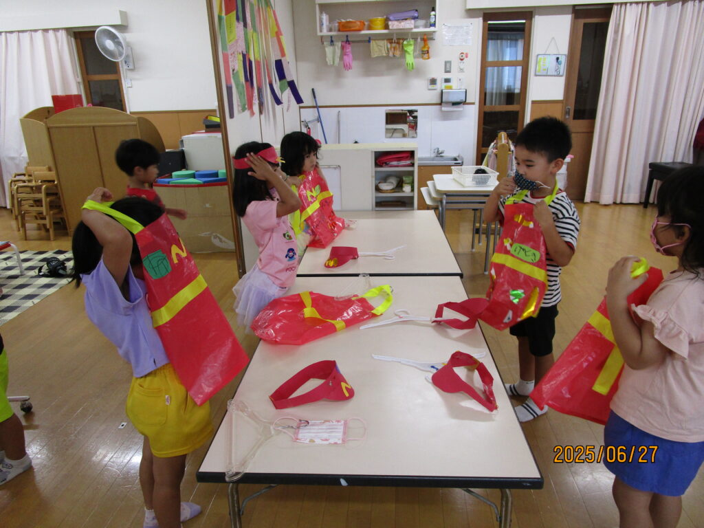ハンバーガー作りや宝探しなど、仲間と力を合わせて楽しんだ経験は、子どもたちの心に大切な思い出として残っていくことでしょう。自分たちで考え計画し、それを実現することができた体験が子どもたちにとって自信につながり、これからの時代を生きぬく力となることを願っています。いつもと違う雰囲気の中で、友だちと笑い合い、支え合い、自分の力を発揮する姿は、年長児ならではのたくましさを感じました。